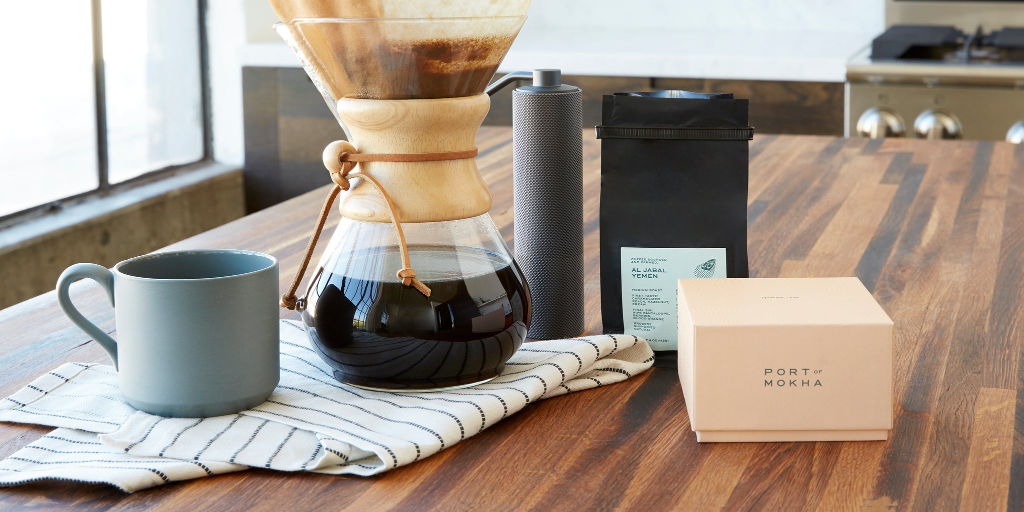 We’ll be making two cups of coffee with about 21 grams of coffee beans. When you’re making coffee using a V60, try to keep a 1:15 coffee to water ratio for a nice, balanced cup.